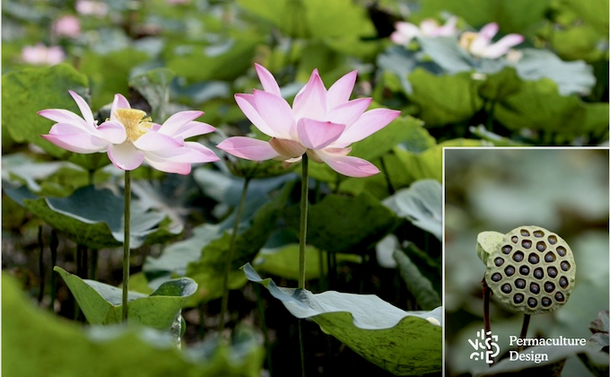 Vous récoltez vos courgettes pour l’accompagnement du déjeuner et glanez au passage quelques pétales de fleurs de lotus ou graines de lotus qui agrémenteront de façon originale et délicieuse votre plat !