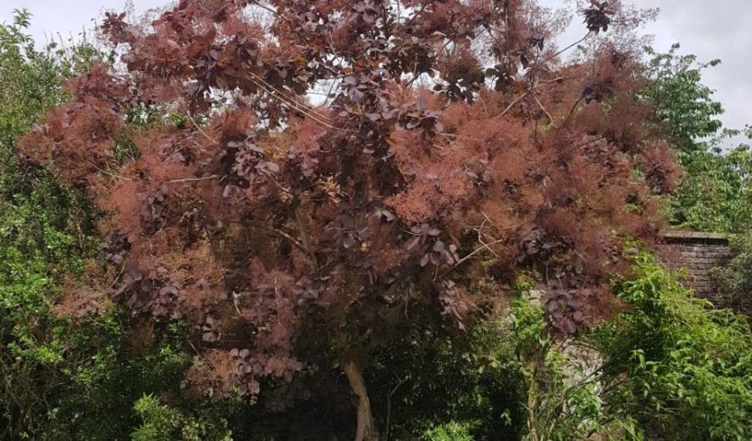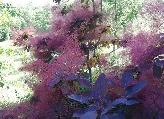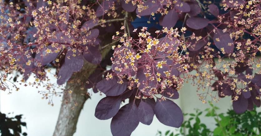 L’arbre à perruques ‘Royal Purple’ est un cultivar remarquable pour son feuillage rouge pourpré et sa floraison vaporeuse exubérante et colorée .