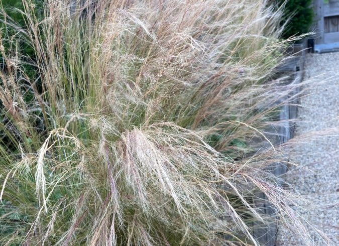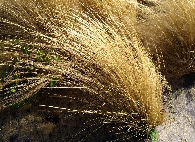 Stipa tenuifolia ou « cheveux d’ange » est une graminée d’origine méditerranéenne que l’on adore pour ses effets légers, graphiques, doux et lumineux. Comment réussit-elle cela ? Grâce à ses feuilles en forme d’épis soyeux qui s’animent au gré du vent et jouent avec le soleil. D’abord vert au printemps, son feuillage se teinte d’une jolie couleur dorée pendant l’été au moment de la floraison. Sa cousine des steppes argentines Nassella tenuissima (syn. Stipa tenuissima) offre les mêmes qualités.