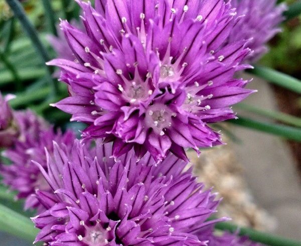 - La ciboulette par son système racinaire puissant permet de lutter contre l’érosion et d’améliorer la structure du sol. Elle permet aussi de fixer les nutriments (autres que l’azote).