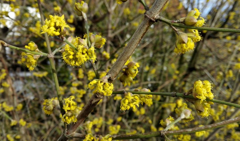 Le cornouiller mâle est un arbuste plein de charme. Il ouvre le bal des floraisons en fin d’hiver avec ses jolies fleurs jaunes qui apparaissent sur bois nu. Ses baies rouges en fin d’été sont très décoratives. Et en automne, son feuillage vert devient pourpre avant de tomber.