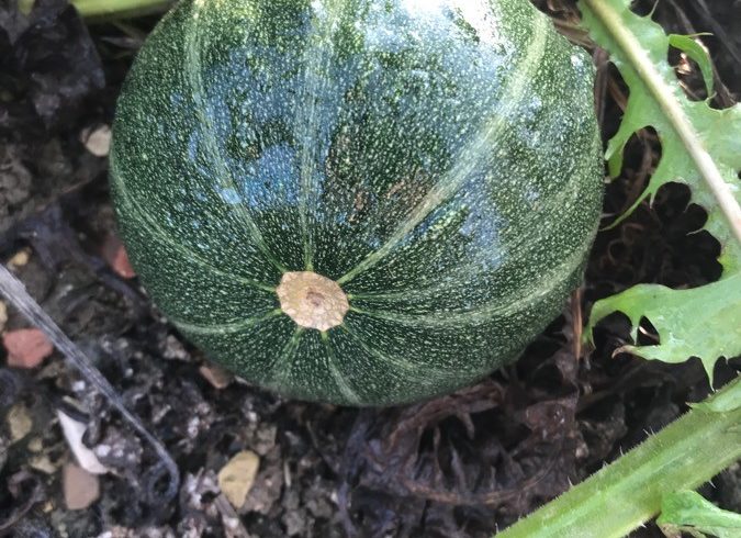 La courgette ‘Ronde de Nice’ ne s’étalant pas comme d’autres variétés, elle prend moins de place au sol.