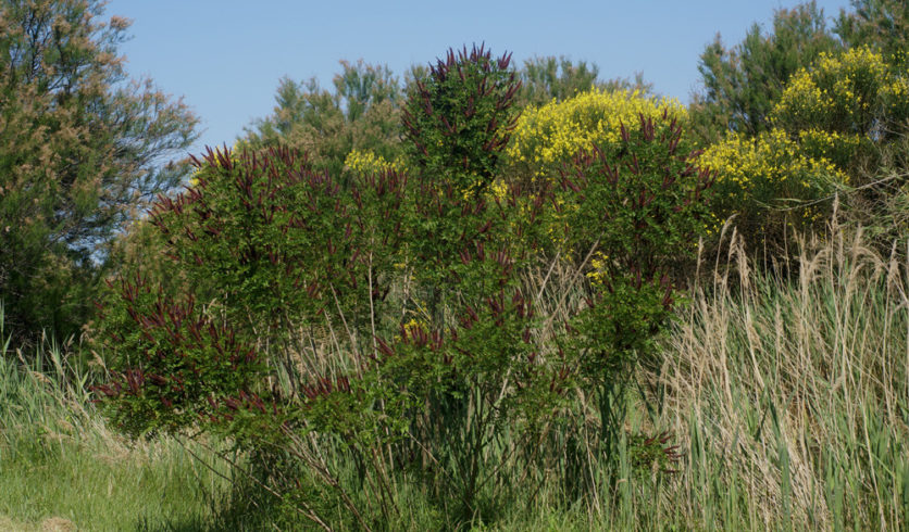 Le faux indigo est un arbuste de taille variable, qui produit de surprenantes grappes longilignes de fleurs violacées. Il est généralement apprécié pour son caractère ornemental et mellifère. Comme la plupart des Fabacées, il est également un bon fixateur d’azote. Attention cependant, car il peut devenir relativement envahissant !