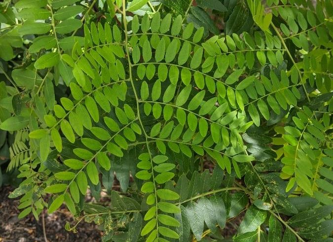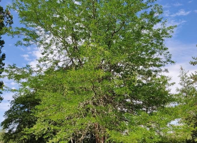 Le févier d’Amérique est un arbre de la famille des Fabacées (les Légumineuses), il produit des fruits en forme de gousses noires et très longues. Sa floraison est discrète, mais son feuillage est décoratif. Il fixe l’azote atmosphérique et s’accommode ainsi d’un sol pauvre.