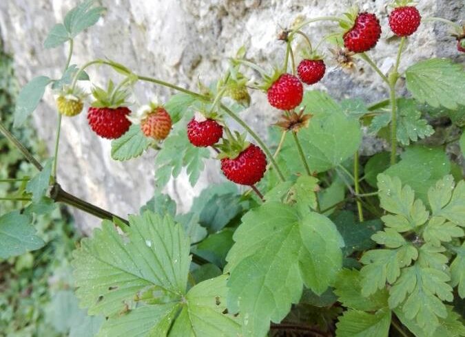 Les fraises des bois sont réputées pour leurs arômes parfumés. Elles présentent l’avantage d’un feuillage persistant et peuvent servir de couvre-sol sous des arbres. Elles donneront un petit air sauvage à votre jardin.