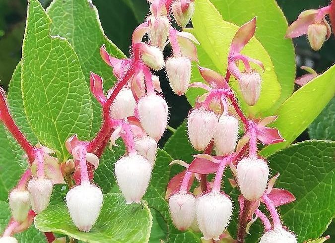 De la même famille que la gaulthérie couchée, la gaulthérie shallon ou « palommier » ressemble fortement à sa cousine, bien qu’elle soit généralement plus grande, avec de petits fruits qui virent au noir. Ces derniers sont comestibles et font le bonheur des oiseaux en hiver ! La floraison fait penser au muguet.