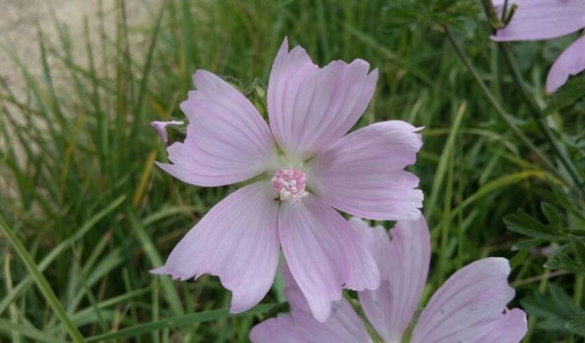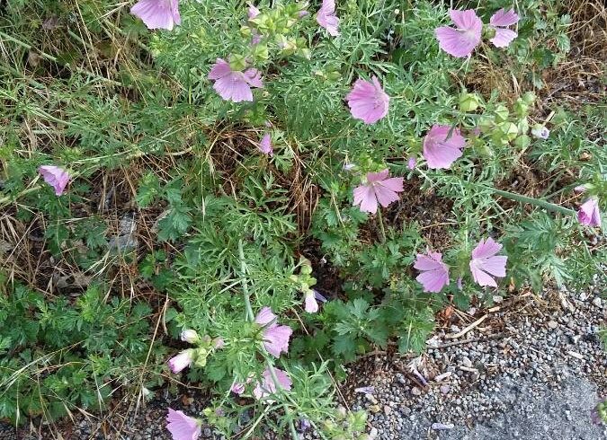 La mauve musquée se distingue de ses cousines à ses feuilles profondément incisées en lanières, qui dégagent au froissement une légère odeur de musc (d’où son nom).