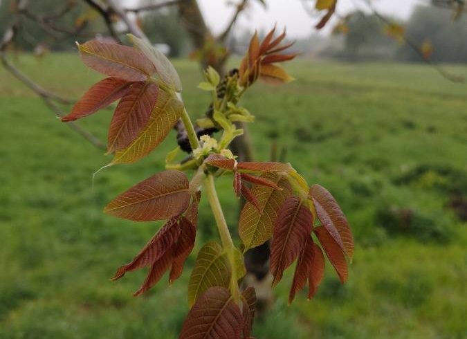 - On choisira soigneusement le lieu d’implantation du noyer en effet celui-ci produit une toxine, la juglone, qui inhibe la croissance d’une grande partie des plantes. Il est toutefois compatible avec certaines et peut être le centre d’une guilde. Son feuillage épais dès le printemps bloque les rayons du soleil et dispense une ombre épaisse, on évitera donc de le planter trop proche des maisons. Enfin c’est un arbre sensible aux gelées printanières. On le plantera donc en plein en soleil et à l’abri des vents forts.