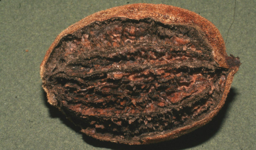 Des colorants jaune orangé ou brun sombre peuvent être obtenus, respectivement à partir des enveloppes de fruits ou de l’écorce.