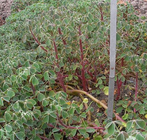 Il est conseillé de buter les pieds d’oca du Pérou au fur et à mesure de leur développement pour augmenter la production de tubercules qui se fait non pas au niveau des racines, mais au niveau des nœuds des tiges.