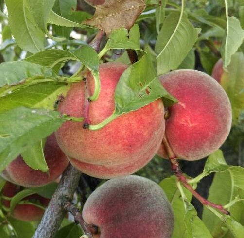 La variété ‘Reine des Vergers’ préconisée ici est très rustique et résistante aux maladies, à la cloque notamment. Elle produit de beaux fruits ronds à la peau rouge et la chair blanche, sucrée et juteuse. Autofertile, elle fructifiera cependant mieux si un autre pêcher se trouve à proximité (dans un rayon d’une vingtaine de mètre au plus).