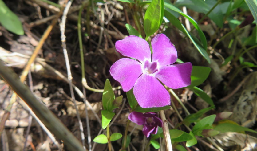 La petite pervenche est une plante vivace indigène qui s’étale sur le sol, souvent au pied des murs, dans les endroits frais. Capable de former un large tapis de verdure, elle sera appréciée au jardin en tant que couvre-sol. Sa jolie floraison, précoce en début de saison, est également propice pour le réveil des pollinisateurs. Il existe des cultivars aux différents coloris.