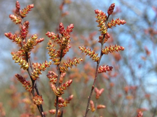 Très décoratifs, les pieds mâles portent avant l’apparition des fleurs de remarquables chatons couleur brun rouge. Attention, car il s’agit d’une plante dioïque, il sera donc nécessaire de planter au moins un pied mâle pour polliniser les pieds femelles afin d’obtenir une fructification automnale.