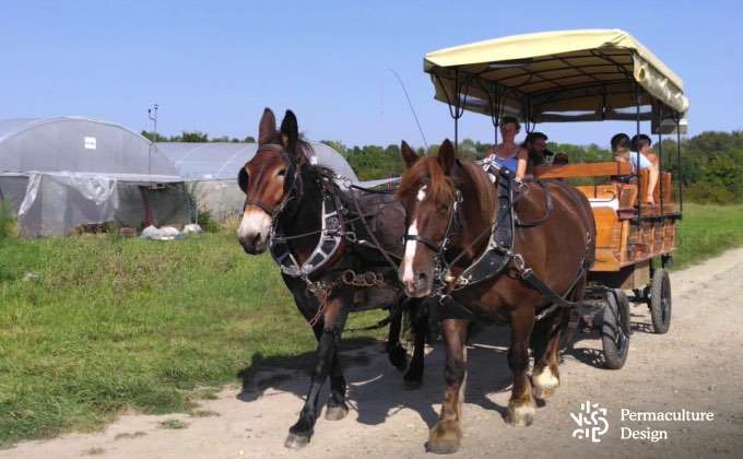 La ferme propose des services de travaux agricoles en traction animale (débardage, ouverture de milieux naturels, entretien de rivière…)