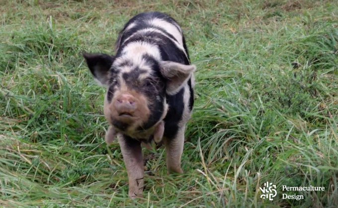 - Avec des animaux en pâturage tournant avec enclos mobile : ici des cochons Kunekune suivis des poules.